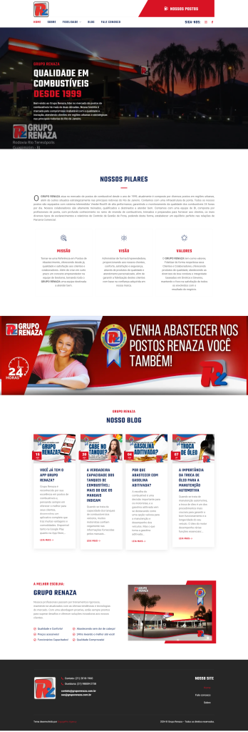 Desenvolvimento do site institucional do Grupo Renaza, empresa do setor de combustíveis com atuação consolidada desde 1999. O projeto teve como objetivo fortalecer a presença digital da marca, apresentar seus valores, serviços e canais de comunicação, além de centralizar conteúdos informativos para o público.